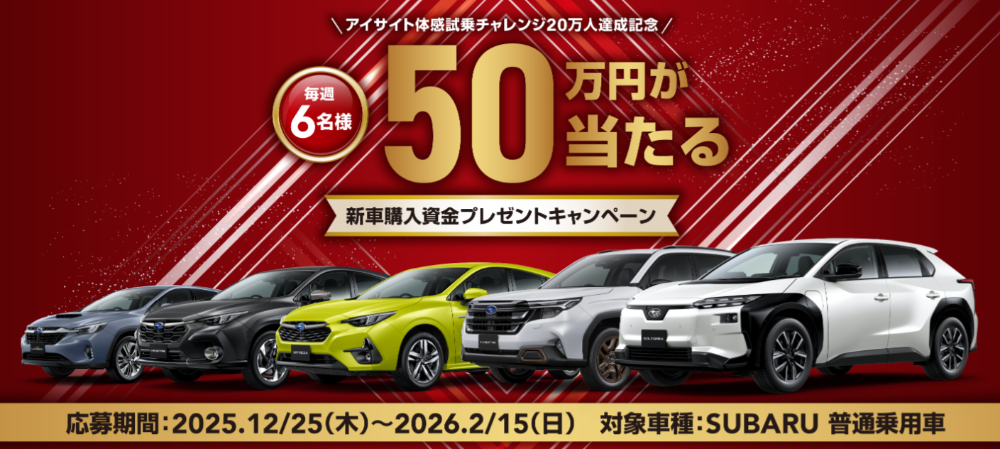 ちなみにこちらのキャンペーン、「アイサイト体感試乗チャレンジ20万人達成記念」として開催されます!