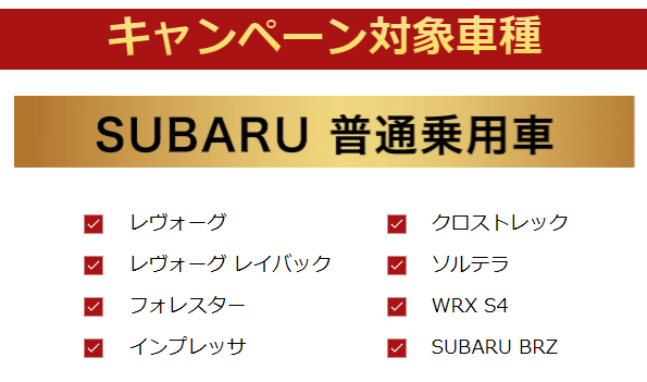 対象車種は以下の通り、スバルの普通乗用車全車種対象です(^O^)/