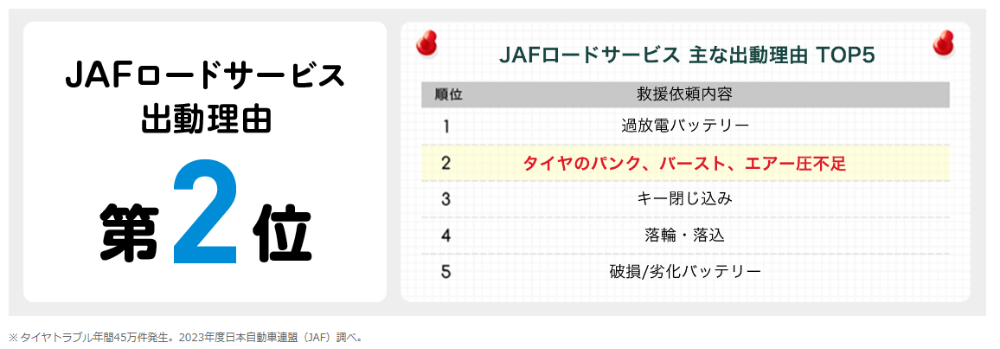 実は車のトラブルの中でも、タイヤ関連の件数はかなり多いのです!!