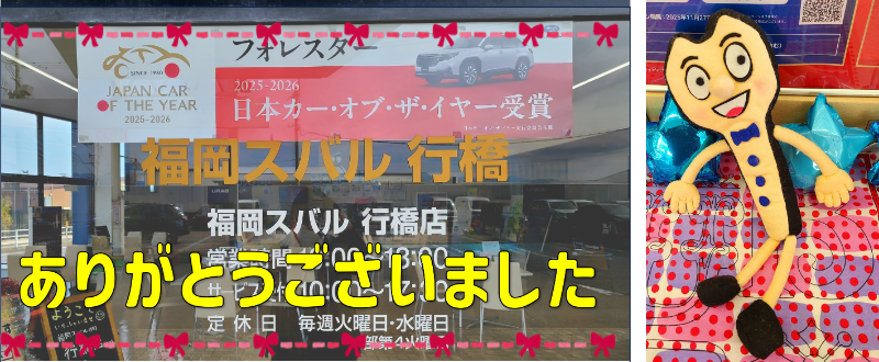 本日をもちまして福岡スバル㈱行橋店は最後の営業日を終えました