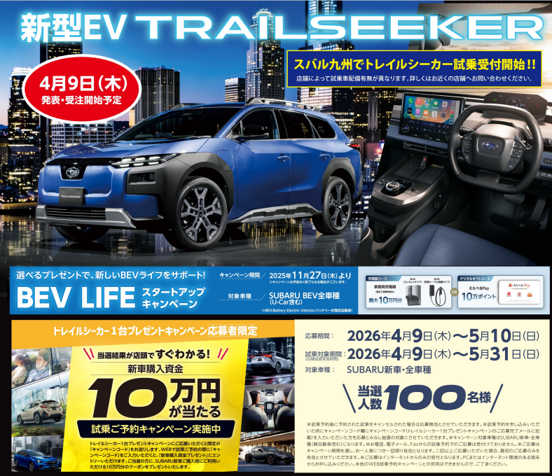 それに伴い、4月2日より「スバル九州誕生フェア」と題して様々なキャンペーンを開催予定です!!