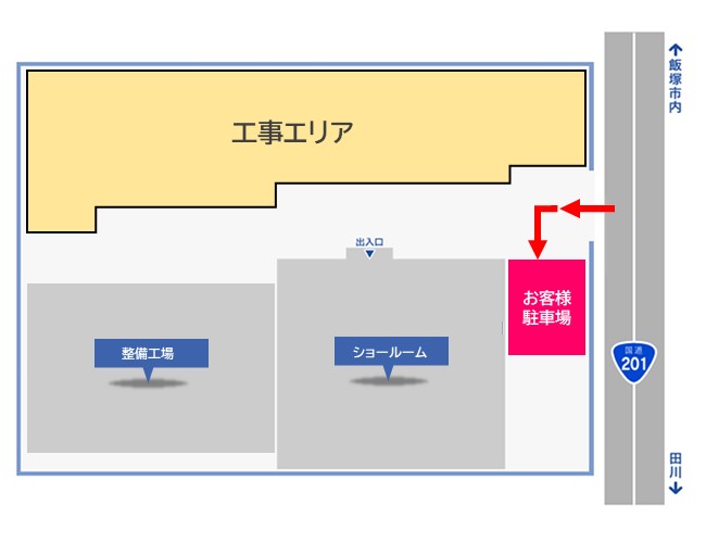 なお、工事期間中も平常通り営業を行いますが、駐車場の変更に伴い、ご来店の際は店舗スタッフの誘導にご協力いただきますようお願い申し上げます。