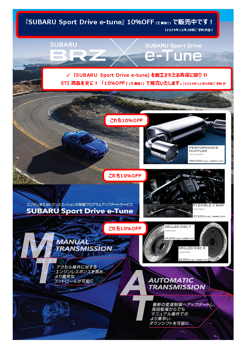 • 『SUBARU Sport Drive e-tune』 10%OFF(工賃除く)で販売中です!