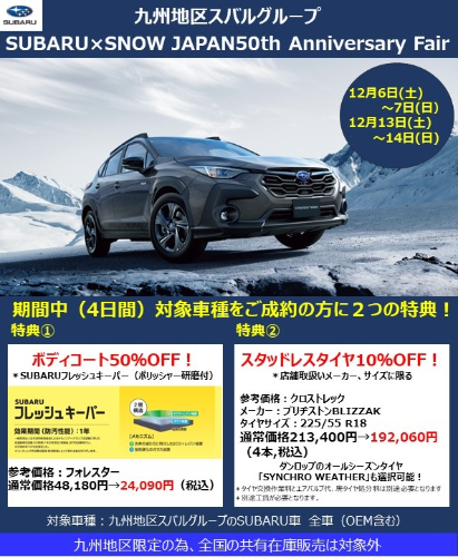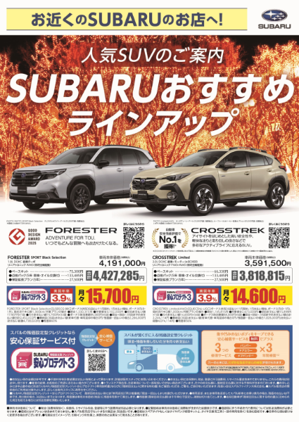 SUBARUでは、先週から、SUBARU × SAJ Anniversaryフェアを開催中!