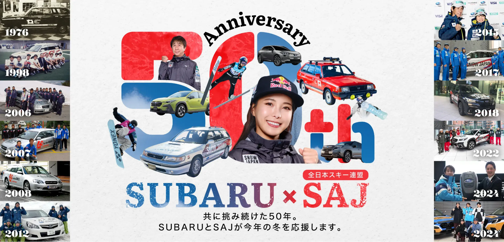 実は、SUBARUと全日本スキー連盟(SAJ)は2026年に50周年を迎えます!