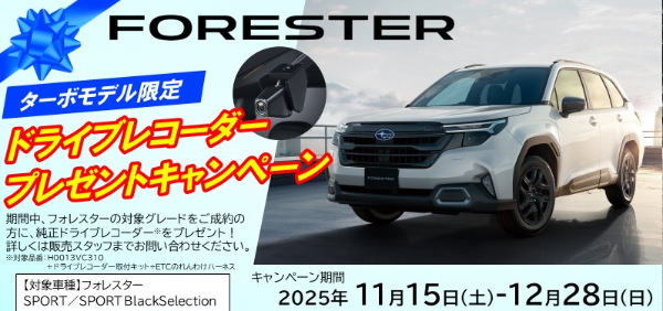 12月28日(日)まで、フォレスター(ターボモデル)を