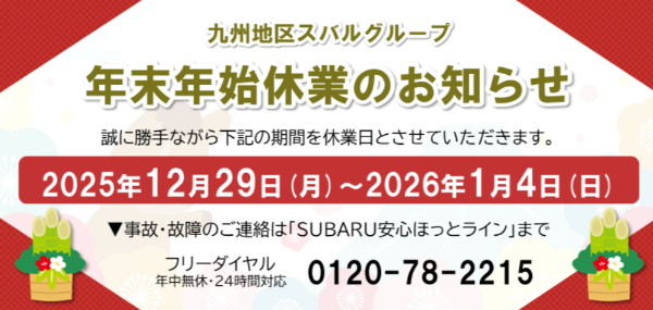九州地区スバルグループ【歳末大感謝祭】開催中!