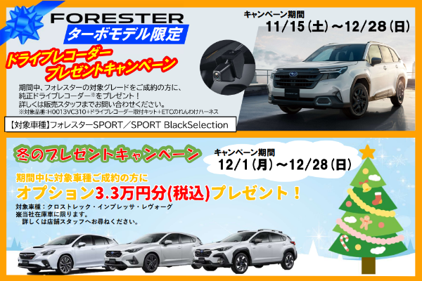 ドライブレコーダープレゼントキャンペーンも12/28(日)まで