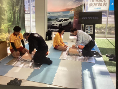 SUBARUでは、提供しているライフセーバーカーに小型・軽量のAEDを配備し、