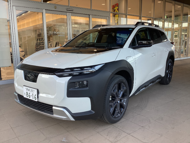 こんにちは。長崎時津店です。本日は、新しい試乗車のご案内がございます。 スバルの電気自動車の第2弾、その名も【トレイルシーカー】です!!4月9日より発表・発売開始を予定しております。ソルテラに続く第2弾の電気自動車で、アウトドアでの機能性の高さと日常的な使いやすさを両立したSUV車です。電気自動車にご興味がある方は、ぜひ長崎時津店へお越しください。