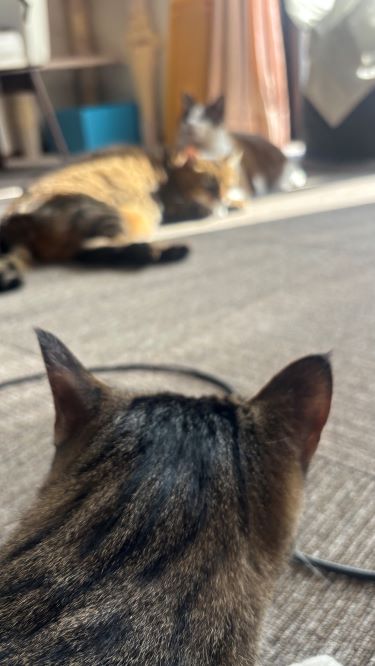 2匹仲良くゴロゴロしていましたが、そんな姿を羨ましそうにもう1匹が見つめていました・・・