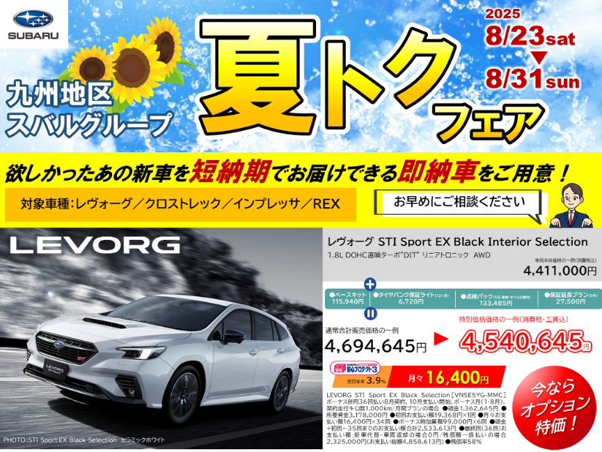 そんな中スバルでは残り2日ですが夏トクフェアを行っております(/・ω・)/