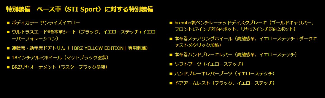 SUBARU BRZ YELLOW Editionの詳細についてはこちら