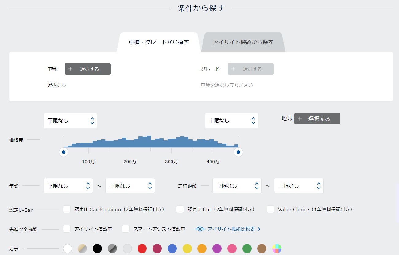 ↓その他、年式や走行距離など、様々な条件で絞り込みができます↓