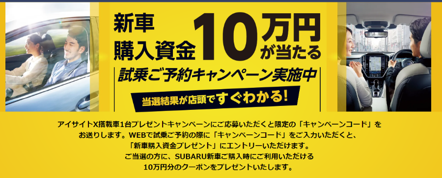 新車の購入資金クーポン10万円分が当たるダブルチャンスキャンペーンも実施しております(^^♪