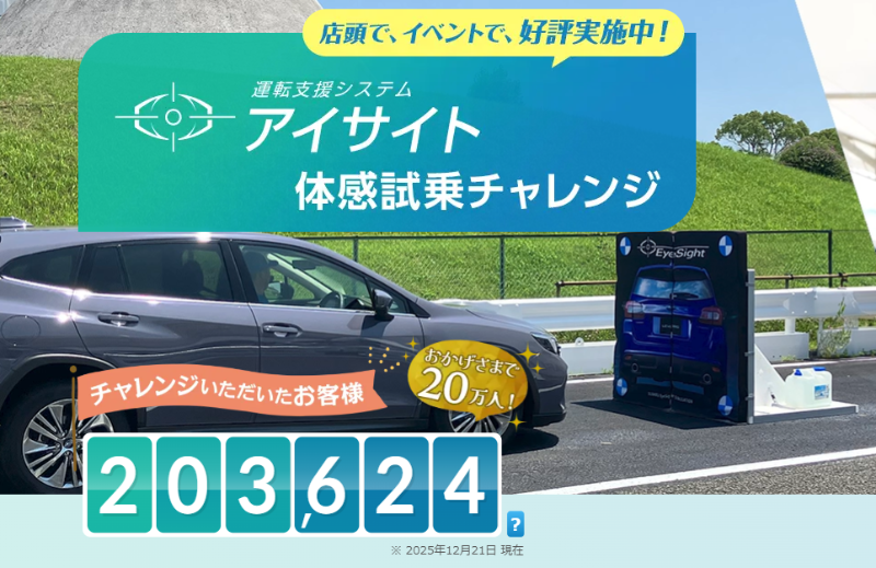 ちなみにこちらのキャンペーン、「アイサイト体感試乗チャレンジ20万人達成記念」として開催されます!