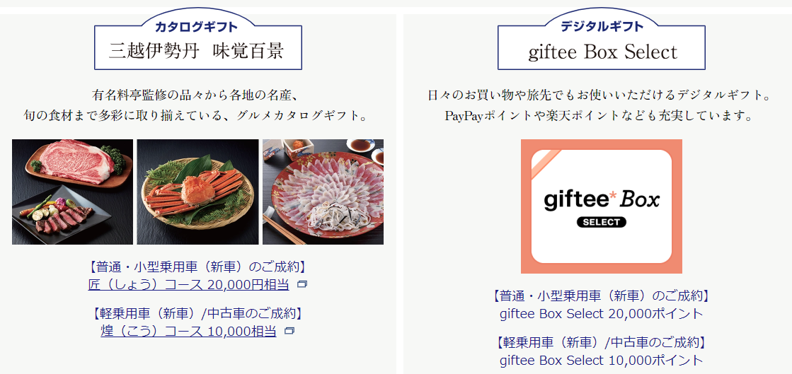 ①新車で普通or小型自動車をご成約の方(2万円分)