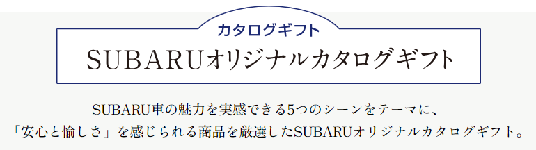 カタログギフトは、【SUBARUオリジナルカタログギフト】、【三越伊勢丹 味覚百景】のどちらかから1点、