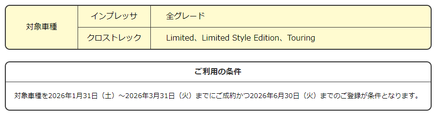 3/31(火)までの間、クロストレックとインプレッサ限定で