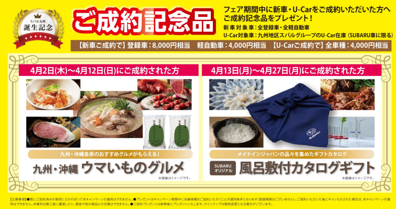 それに伴い、4月2日より「スバル九州誕生フェア」と題して様々なキャンペーンを開催予定です!!