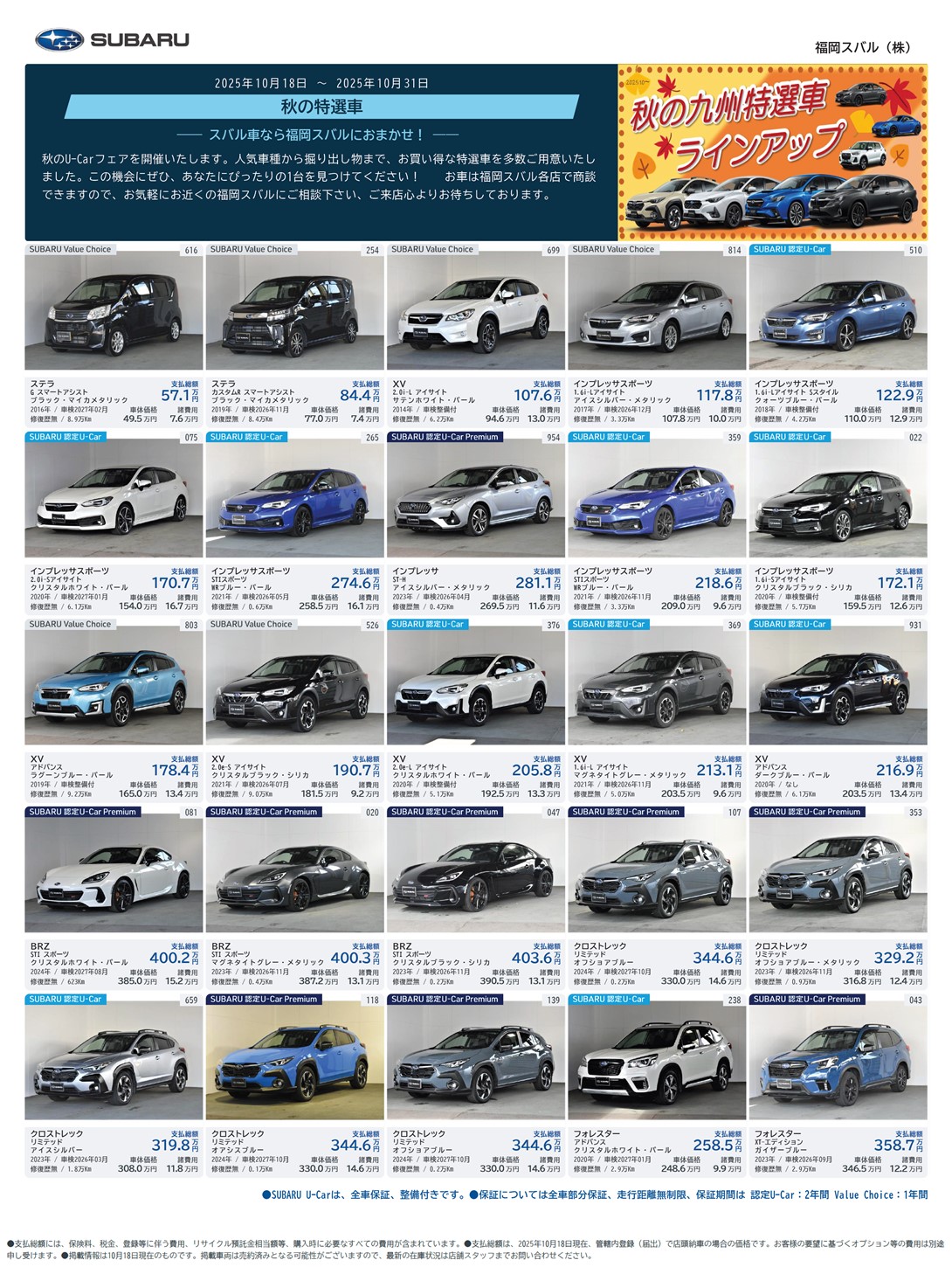 SUBARU認定U-Car 10月特選車のご案内