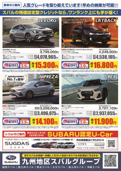 SUBARUでは、早く納車できるお車も多数そろえております。