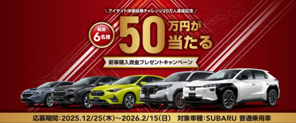 毎週6名様に新車購入資金50万円が当たる特別なキャンペーンです✨