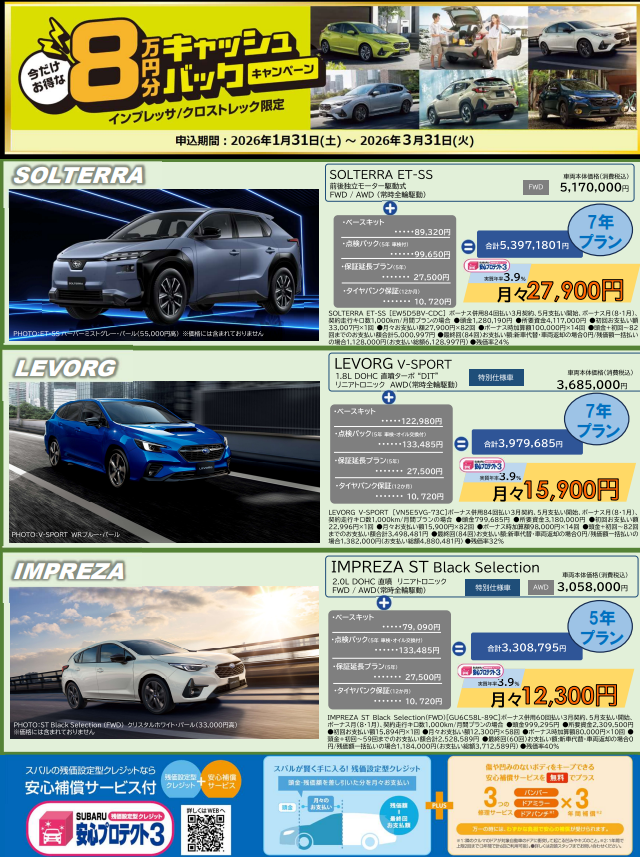 そして、インプレッサ、クロストレックの対象グレードご成約かつ2026年6月30日(火)までのご登録で