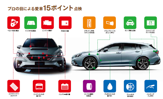スバルのプロが愛車15ポイント点検を特別価格1,650円で行ないます。