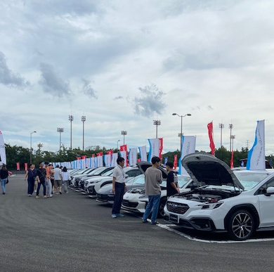 先週末の "中古車大展示会" には多くのお客様が来場いただき誠にありがとうございました。また、暑い中スバルブースにも多くのお客様が来てくださり熱心にお話を聞いてくれました。 こちはら展示会終了後、車輛の搬出風景です。となりの野球場の夜間照明がいい感じになってロマンチックな感じでした。また次回 開催をお楽しみに!