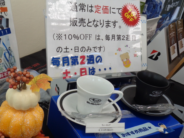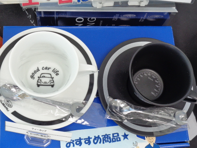 スバルロゴ入りの、カップ&ソーサー、スパナ型のスプーン、タオル等々・・・