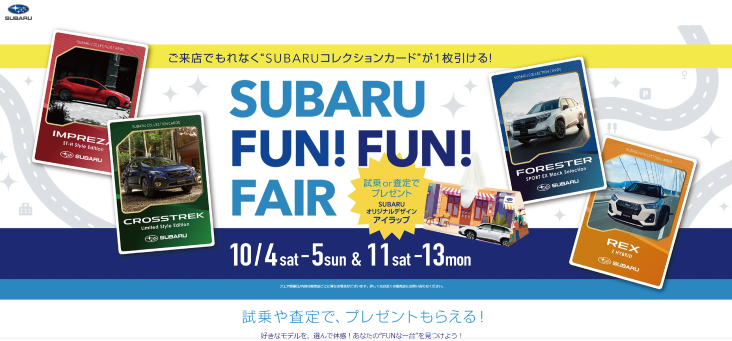 大分スバルでは11日~13日の3日間フェアを開催しております!ご来場プレゼントもございますので是非遊びに来てください☆彡
