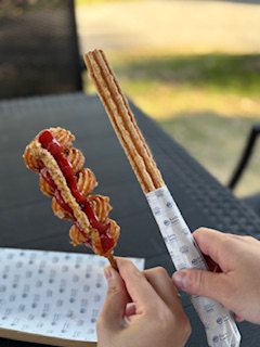 初めてチュロドッグを食べましたが、あまじょっぱいくてもっちもちでとってもおいしかったです。