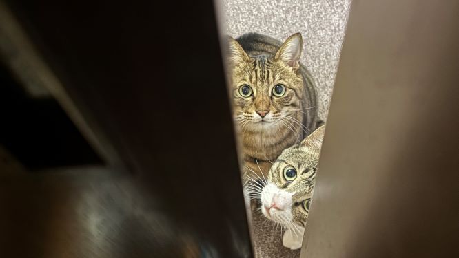 家にいる猫がドア隙間からみてきました"(-""-)"、警戒中みたいなのでおやつあげて警戒を解きました(笑)