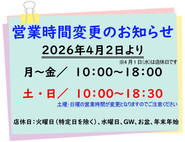 まずは営業時間が変更になることをお伝えいたします☆
