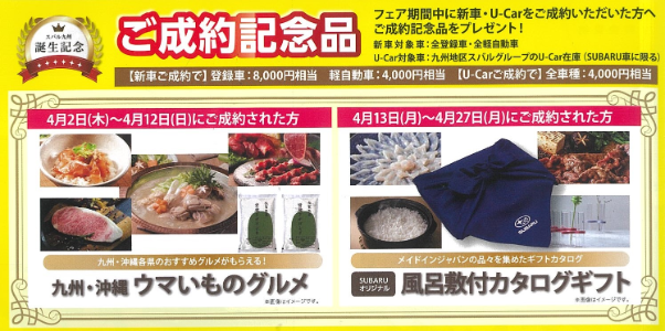 そして4/2から4/27までの期間中、スバル九州誕生フェアを開催します(^^)/!