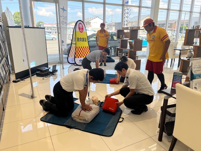 講師として大分県ライフセービング協会の方々にお越しいただき、お客様そして従業員向けに開催いたしました。