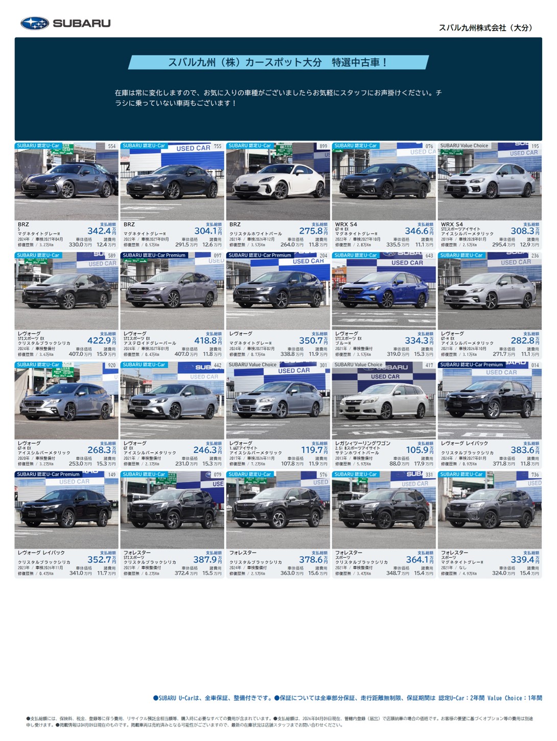 2026.04.13 お知らせ 大分スバル
