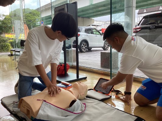 1月に沖縄スバル 浦添店と豊崎店で沖縄県ライフセービング協会の方を講師にお迎えし「AED講習会」を開催いたしました。